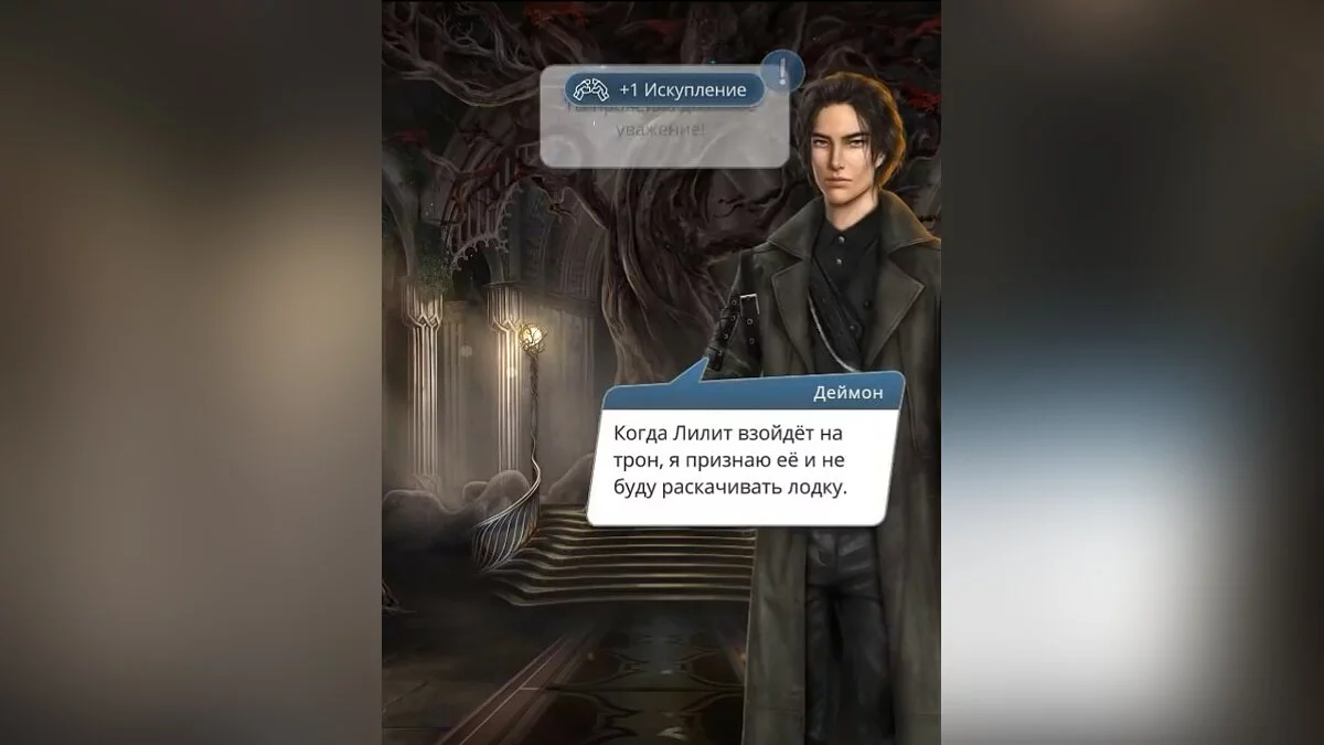«Искупление», если выбрали все правильные варианты, «Ты проявила должное уважение»; - +1