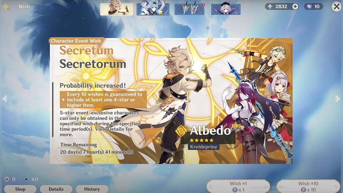 Если вы использовали 50 попыток в стандартной «Молитве события персонажа», но так и не выбили пятизвёздочного персонажа из списка гарантированных, то вам стоит продолжить молиться в «Молитве события персонажа — II». Максимум через 40 попыток вы со стопроцентной вероятностью получите гарантированного пятизвёздочного героя.