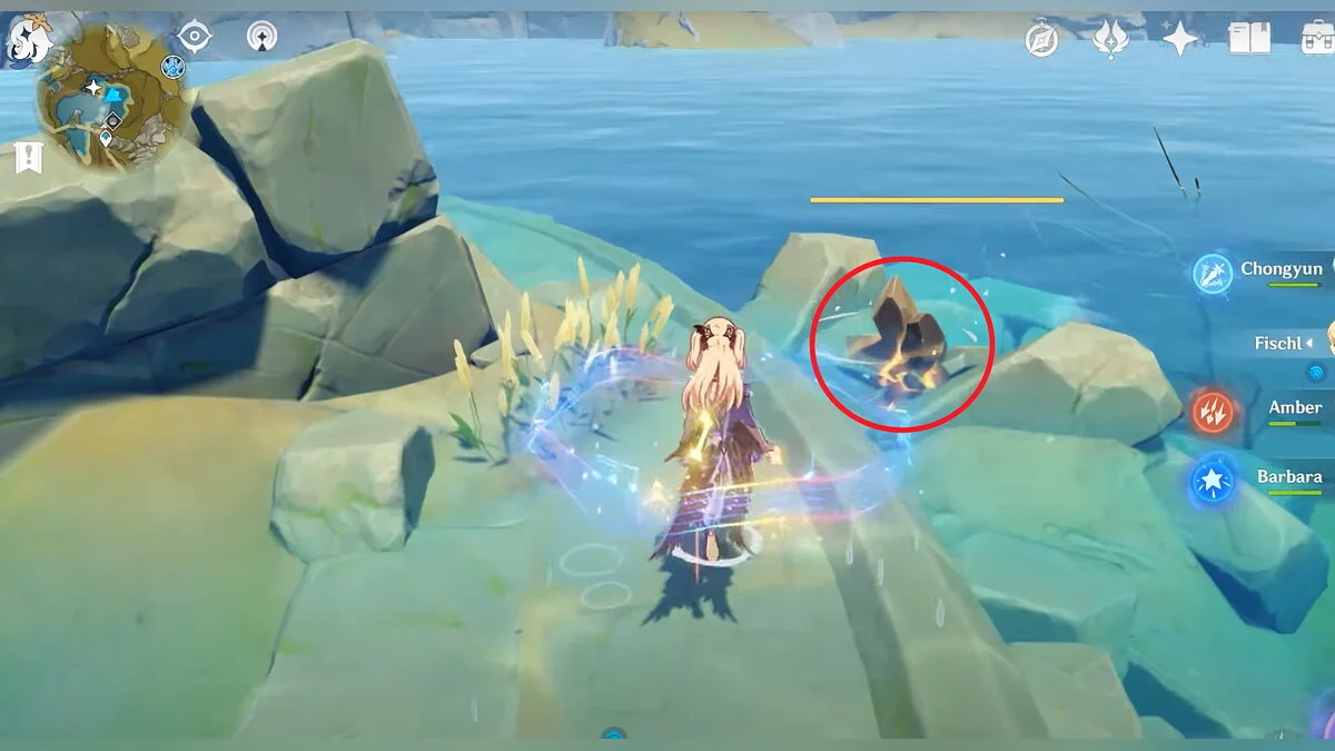 Чтобы этого избежать, накладывайте на персонажей Гидро-статус при помощи заклинания, которое связано с магией воды, или вызывайте элементальный щит. Для этого атакуйте огненного врага Гео-персонажем и подбирайте кристалл. Он поможет не только избавить от Пиро-статуса, но и уменьшить урон от стихийных атак противников. И не забывайте восстанавливать здоровье ваших героев.