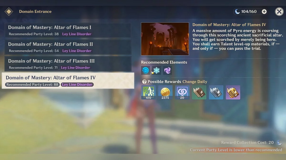 Вас ждёт сражение с Пиро слаймами, Пиро магами Бездны и другими огненными противниками. Для сражения с ними вам потребуются Гидро или Крио-персонажи. Помимо этого, желательно взять героя, который владеет стихией земли, и лекаря.