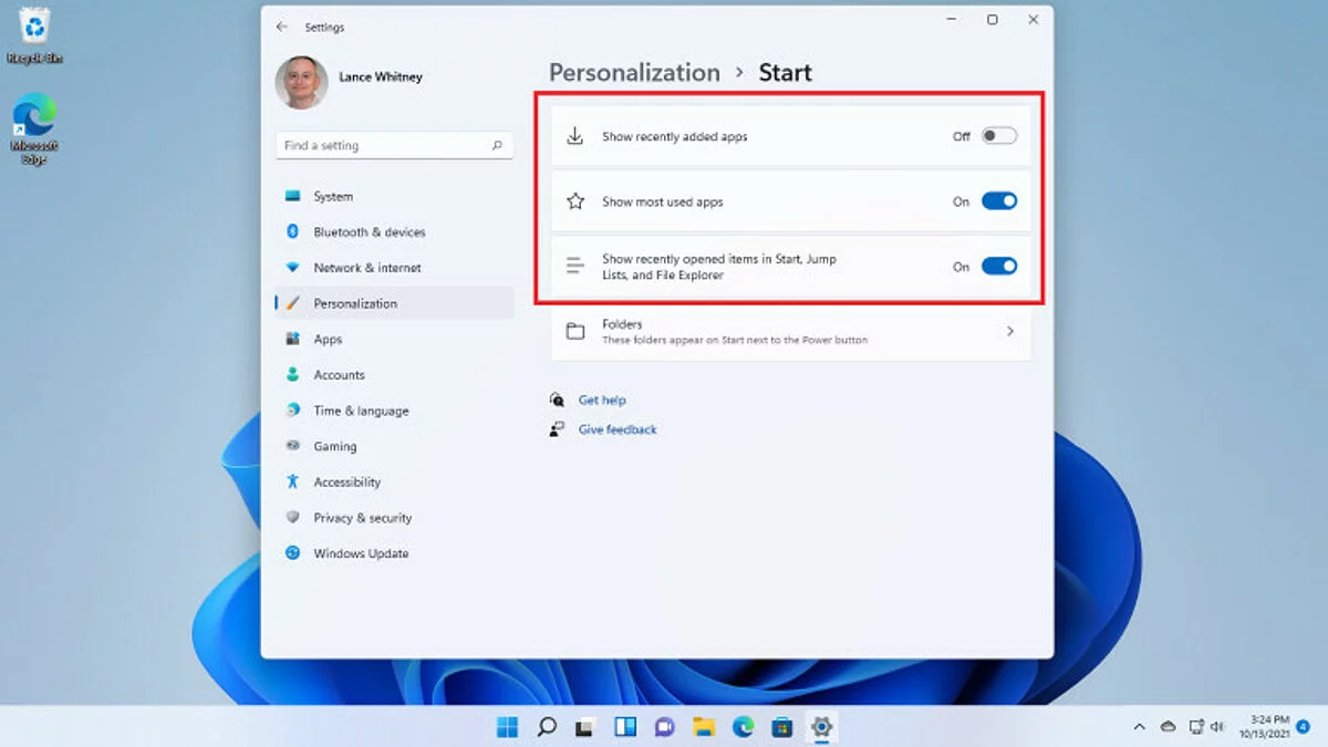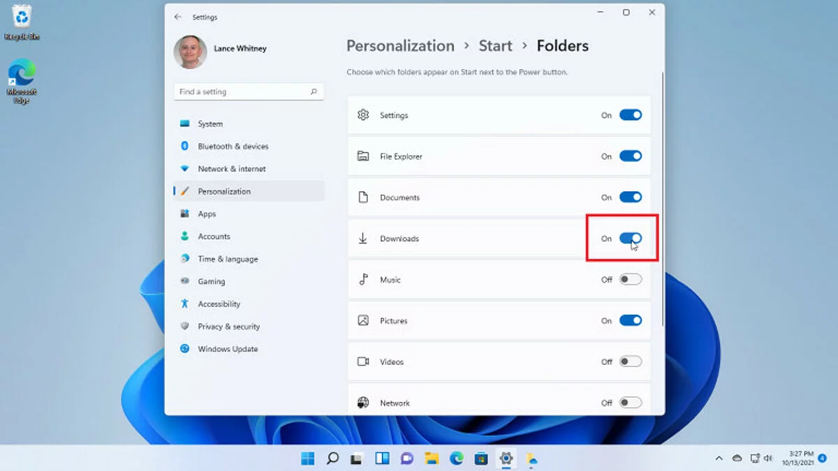У пользователя есть возможность добавить папки в нижнюю часть меню «Пуск», выбрав их в разделе «Настройки» > «Персонализация» > «Пуск» > «Папки». Таким образом, можно добавить туда «Проводник», «Настройки», «Загрузки», «Документы» и прочее.