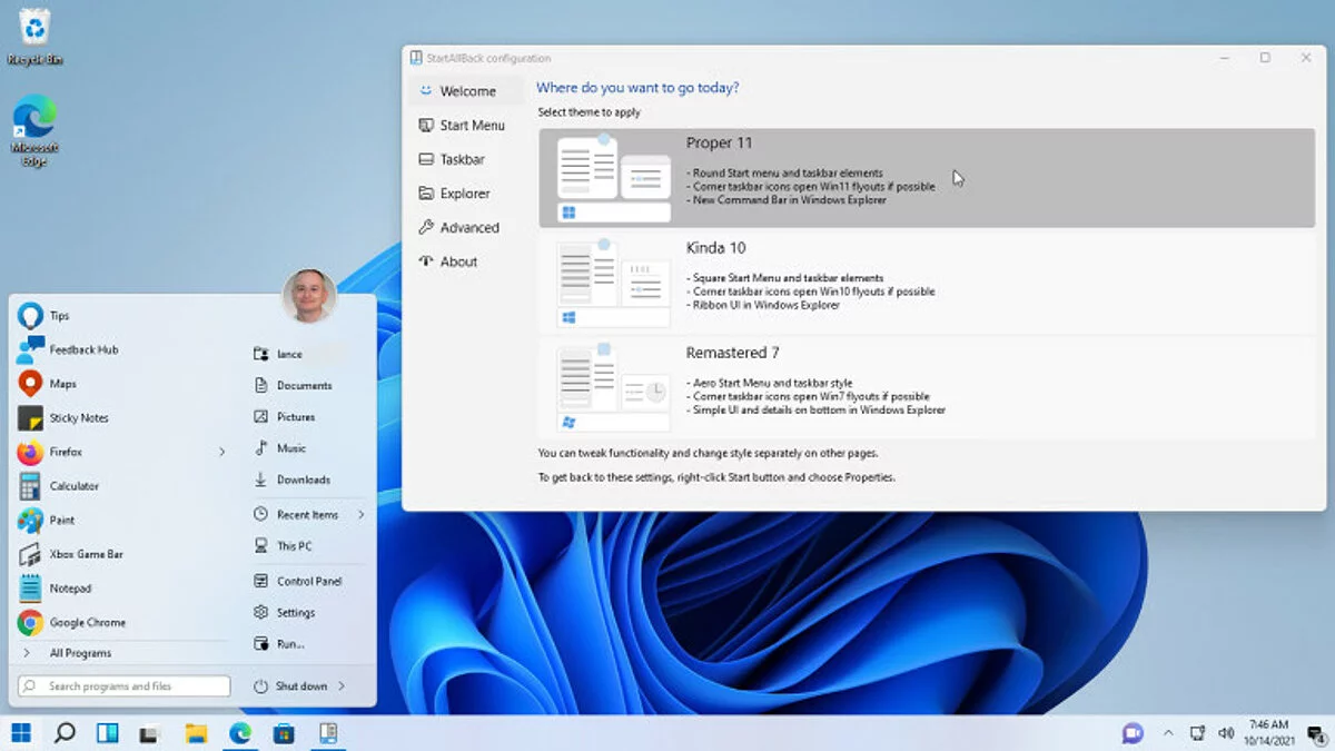 Она позволяет стилизовать меню под Windows 7 или 10, или даже под Windows XP, настроить внешний вид кнопки, цвета шрифтов и так далее. Также она умеет включать классический вид контекстного меню, поскольку новый многим пришёлся не по вкусу.