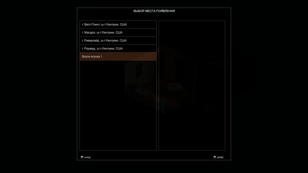 - После полноценной загрузки сервера игроку предоставится возможность выбрать стартовую локацию и создать персонажа, как в одиночной игре.