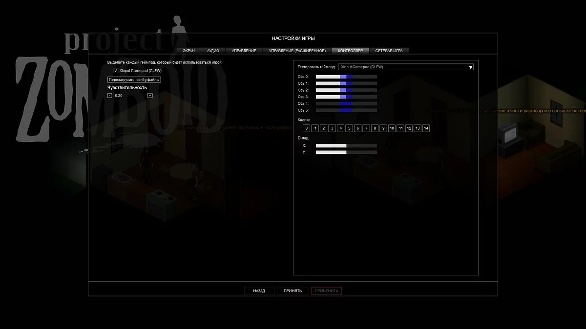 С этого момента экран монитора разделится на две части. Первый игрок будет управлять персонажем при помощи клавиатуры и мыши, а второй — контроллером. Не забудьте проверить работоспособность всех клавиш геймпада в настройках игры. Для этого нажмите «Esc» и перейдите в «Настройки». Откройте раздел «Контроллер» и используйте разнообразные кнопки для проверки устройства. Также здесь можно настроить чувствительность контроллера.