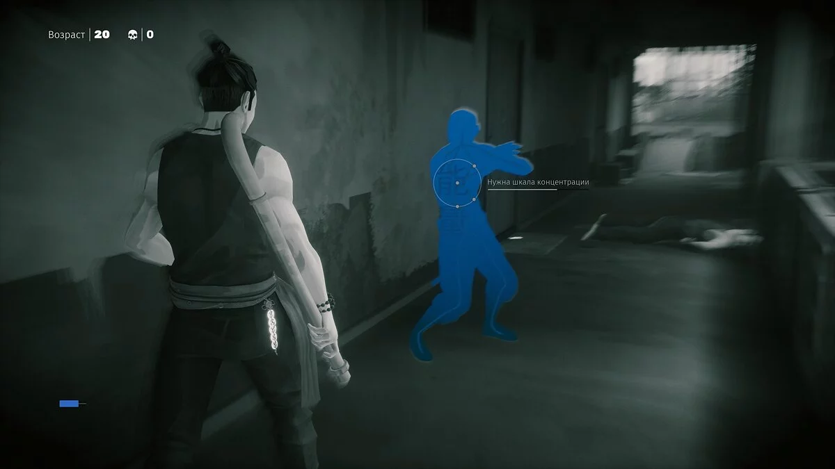 Слева в нижнем углу вы можете заметить синюю полоску — это концентрация. Изначально у героя лишь одна ячейка, однако благодаря тотемам можно купить еще. Концентрация позволяет использовать сильный прием, который не потребует никаких комбинаций. Иногда такой скилл способен мгновенно вырубить противника или сломать его защиту.