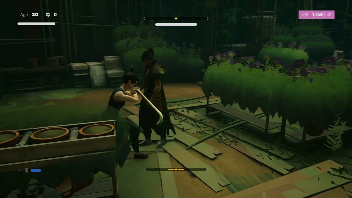 На этом этапе Фахар становится злее и часто использует бамбук в качестве укрытия. Там же он подготавливает мощный бросок, который наносит значительный урон герою. Можно уклониться от атаки, но мы рекомендуем отойти подальше от кустов и возможной точки приземления врага. Как только противник выпрыгнет из бамбука следует сразу же подбежать к нему и нанести как можно больше урона. Периодически Фахар будет возвращаться обратно в кусты, поэтому придётся повторять этот процесс несколько раз. Также можно сразу обойти бамбуковые укрытия и с другой стороны найти деревянные палки. Они облегчат битву с врагом.