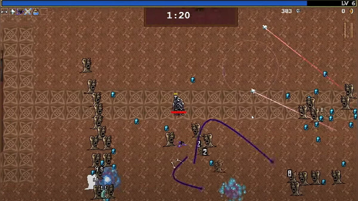 Для прокачки вам потребуются «Камни опыта» (Experience Gems). Они выпадают из поверженных противников. По мере повышения уровня героя у вас будет появляться возможность улучшить оружие. Необходимо достичь восьмого уровня и найти определённый предмет. У каждого оружия он свой.
