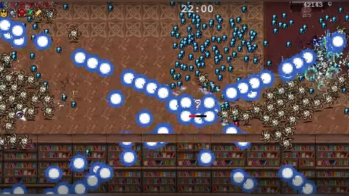 Она особенно эффективна, когда враги окружают вас со всех сторон. Библия действует на короткой дистанции, но атакует одновременно во всех направлениях. Похожим образом действует «Чеснок» (Garlic), о котором мы расскажем ниже, но он полезен лишь на раннем этапе прохождения из-за небольшого числа доступных улучшений. А на «Королевскую Библию» можно поставить гораздо больше апгрейдов, благодаря чему она останется эффективным оружием до самого конца игры. По крайней мере, против рядовых врагов.