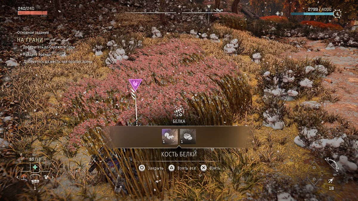 Обычных животных легко разыскать в лесу. Они постоянно появляются в режиме реального времени, поэтому достаточно уделить некоторое время на поиски животных и прокачать подсумки. Для их обнаружения необходимо зажать клавишу «R3» (правый стик) — включится визор, который подсветит ярким оранжевым цветом всю живность в округе.