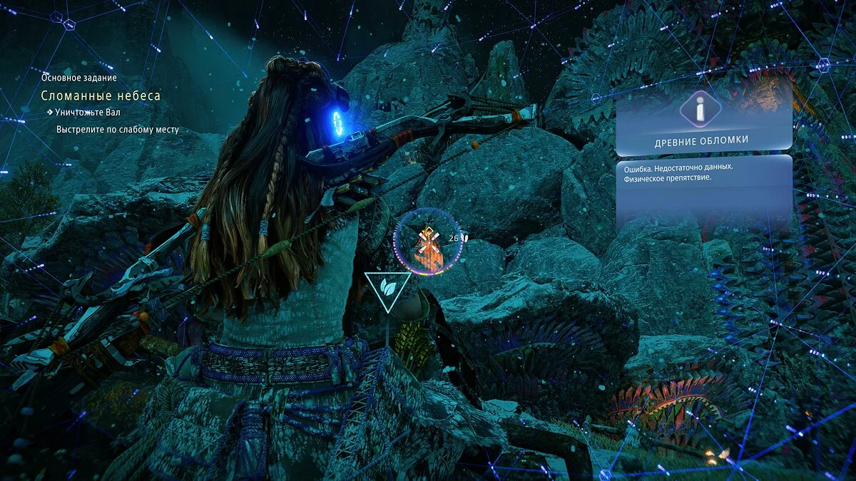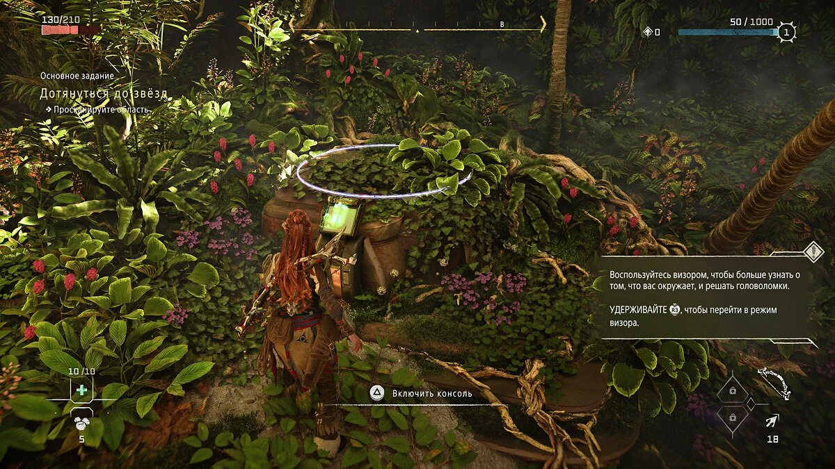 Изучите территорию лагеря с помощью визора, после чего Элой предложит вытащить обломки.