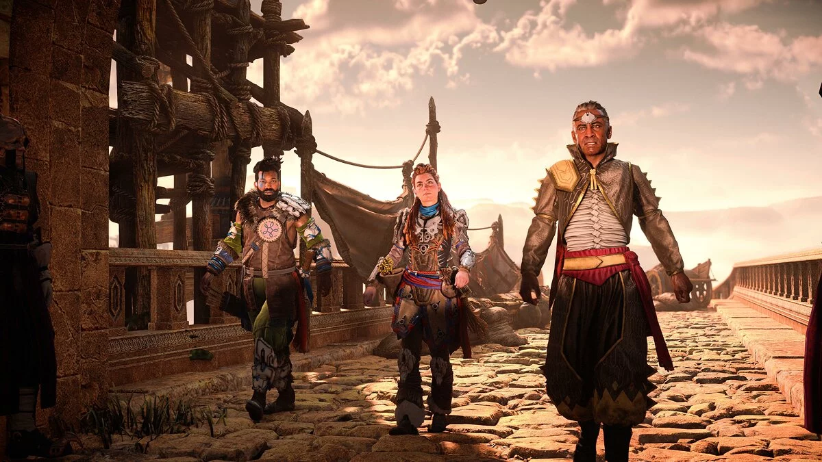 Смотрите кат-сцену, как Элой и Варл возвращаются в город.