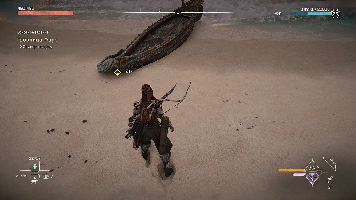 Идите к Гее и смотрите кат-сцену. Теперь вам надо отправиться в лагерь Квен, чтобы найти бункер Фаро. Загляните по дороге в Срез Воды — большое поселение, где можно закупиться всем необходимым. Прибыв в нужное место, вы ничего не обнаружите, кроме лодки. Воспользуйтесь ею, чтобы переплыть на другой берег.