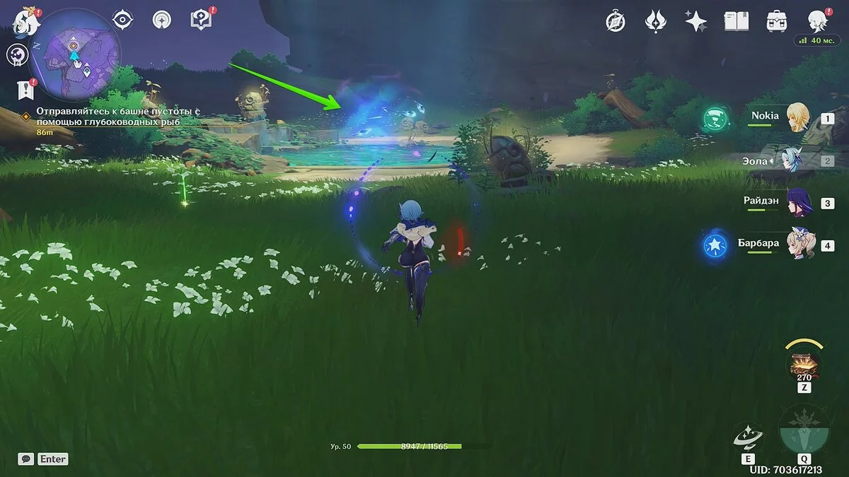 Первая башня пустоты находится на северо-западе от статуи вассалов, в регионе с интенсивностью разложения «15». В этой локации вы не будете испытывать сложности в сражениях с монстрами, поэтому сразу отправляйтесь туда и найдите пруд с глубоководными рыбами.