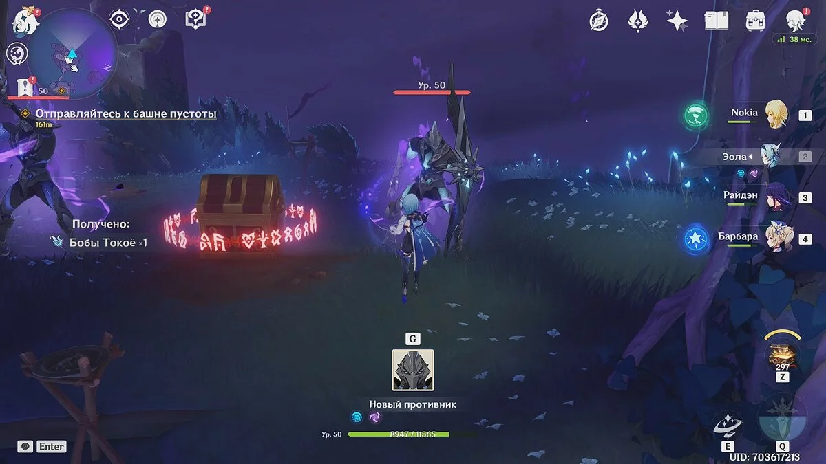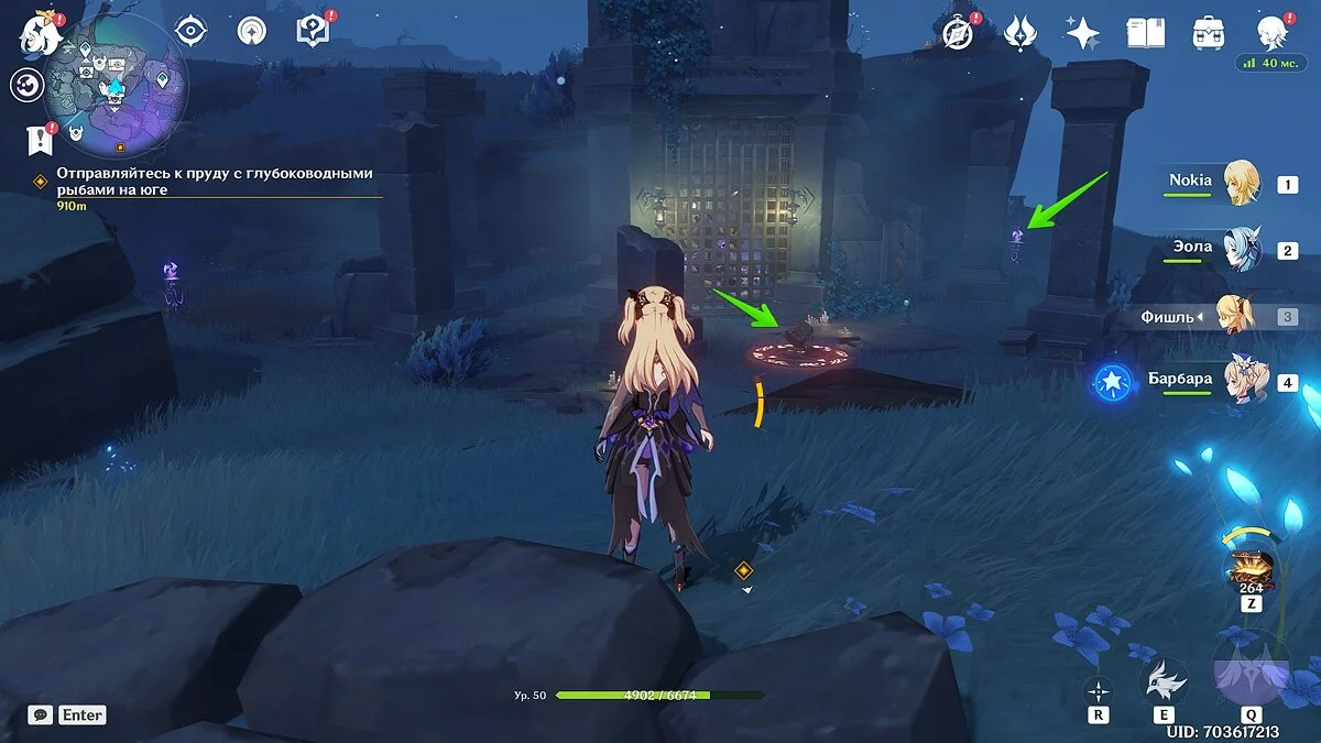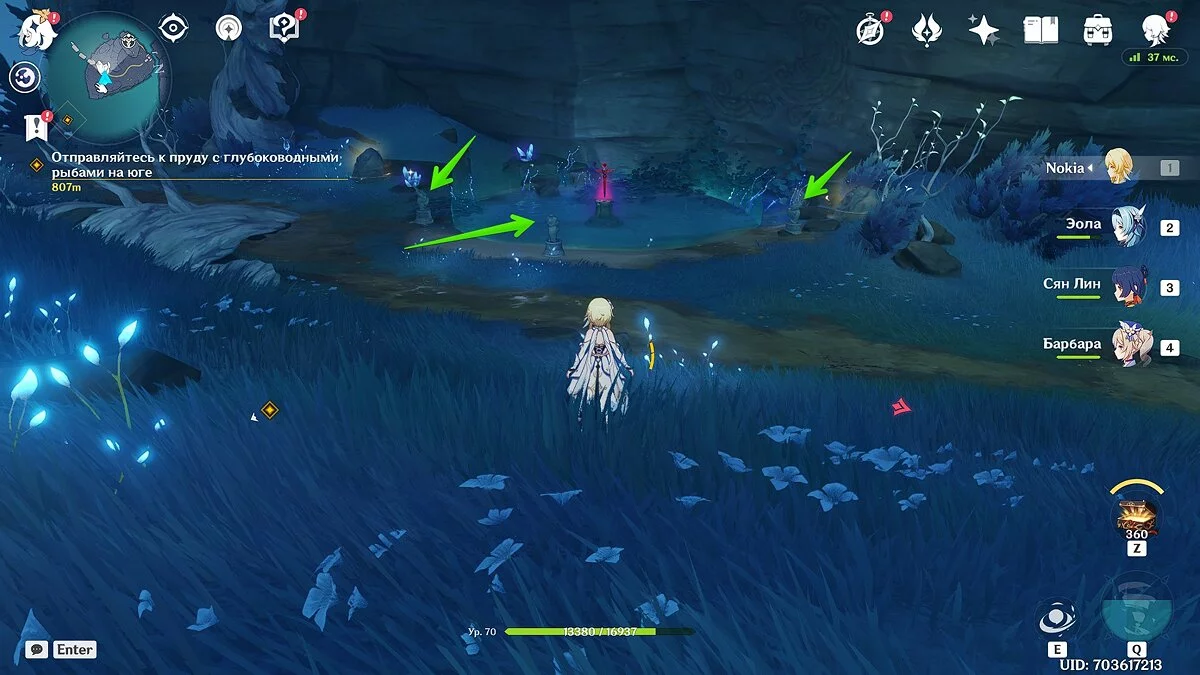 Экипируйте персонажа с электро способностями и луком. Для этого отлично подойдёт Фишль. Проследите, как движется фея и произведите заряженные выстрелы по алтарям в таком же порядке. Если всё сделали правильно, перед вами появятся два мага бездны. Убейте их и осмотрите сундук.