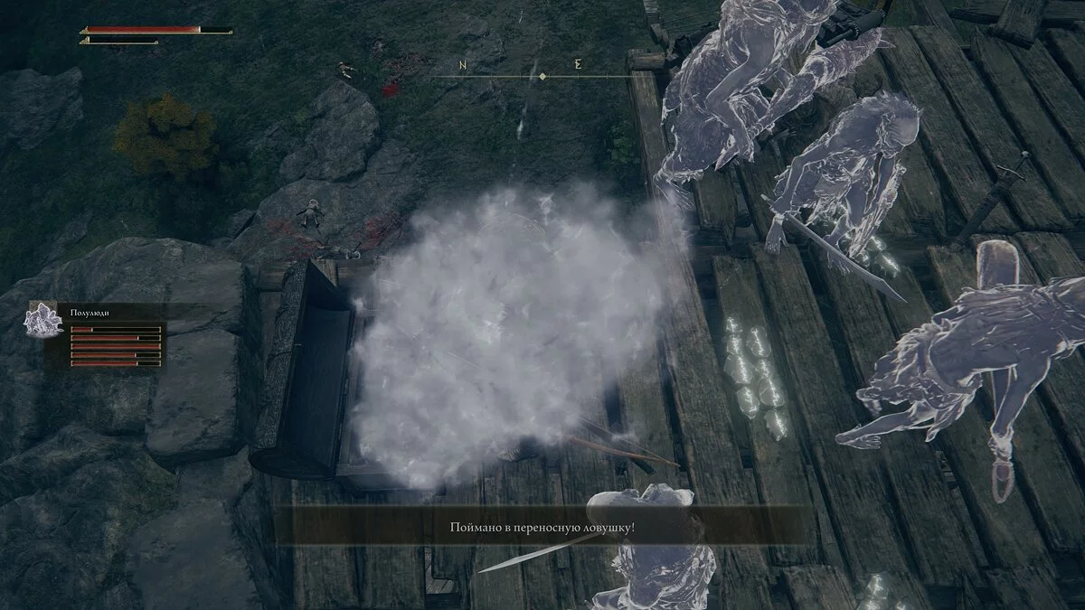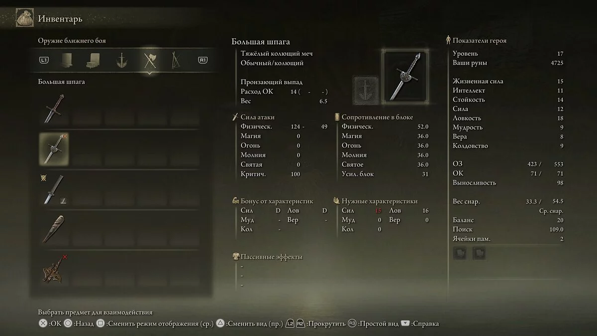 Обратите внимание, что в Elden Ring появилась функция «стелса», с помощью которой игрок может бесшумно подойти к противнику и нанести точный удар в спину. Предварительно необходимо присесть, нажав клавишу «L3» (левый стик). Для фокусировки целей используйте кнопку «R3» (правый стик). В большинстве случаев мы будем использовать удары со спины.