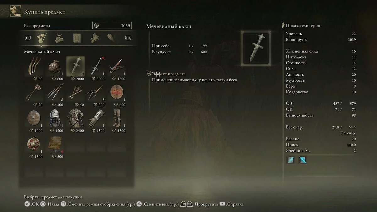 - Мечевидный ключ — 2000 рун.