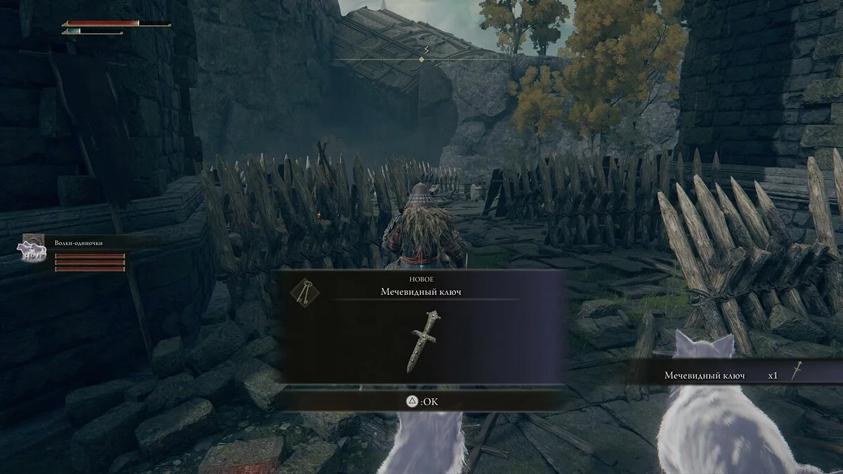 Активируем место благодати и продолжаем путь вглубь замка. Ворота окажутся закрытыми, человек возле них предложит обойти крепость сбоку. Идём налево. Здесь же найдём ещё одно место благодати. Поднимаемся по лестнице. Уничтожаем трёх противников.