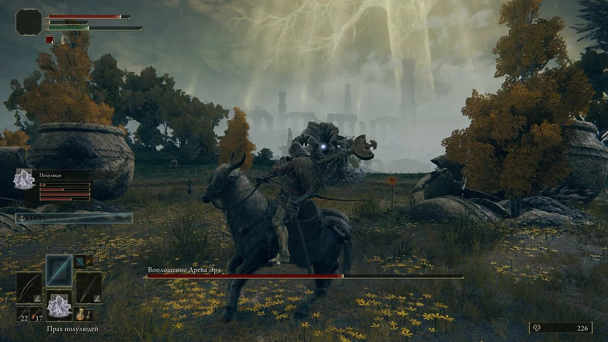 Во второй фазе босс переродится в Зверя Элдена. После убийства противника получим «Воспоминание об Элдене».