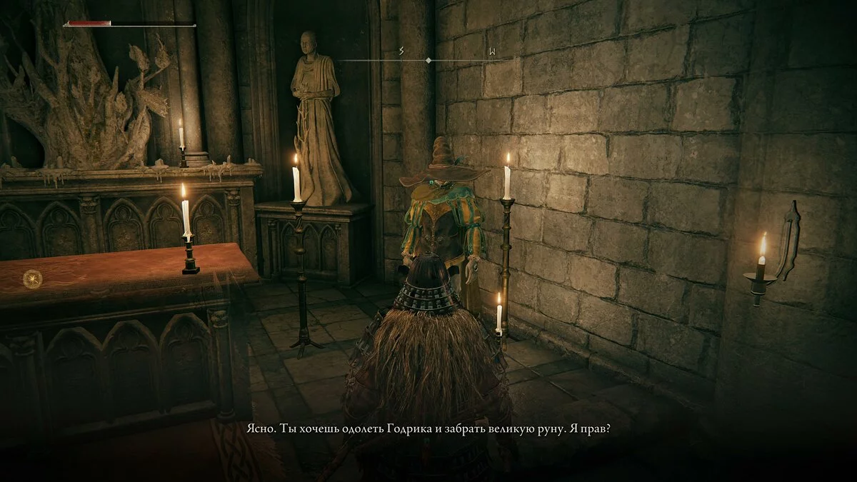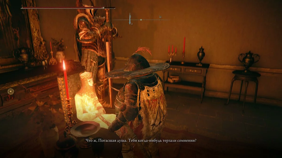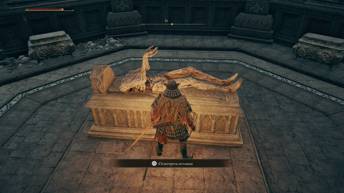 Девушка будет сидеть напротив и сможет улучшать прах духов. С помощью него игрок призывает призрачных напарников. Возвращаемся в замок Годрика и идём в комнату с телами. Здесь будет обнаружен предмет одежды.