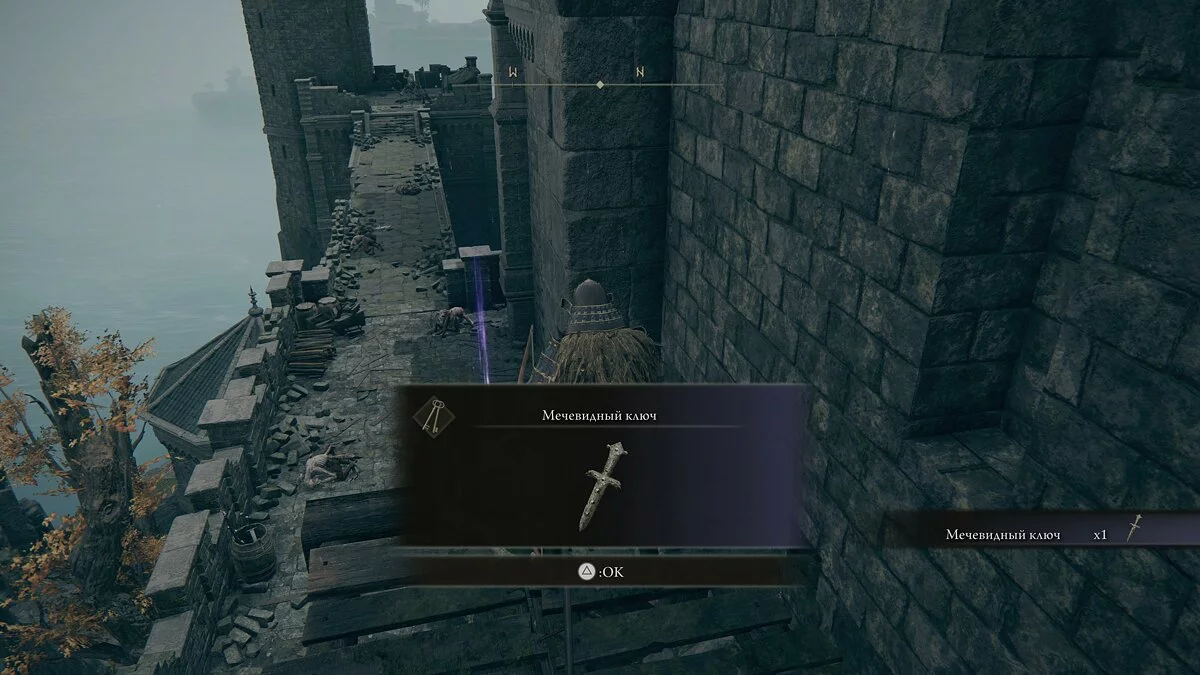 По пути также можем открыть с помощью мечевидного ключа недоступную ранее зону, уничтожить противников и забрать предметы «Мизерикорд» и «Каплевидный щит с гербовым ястребом».