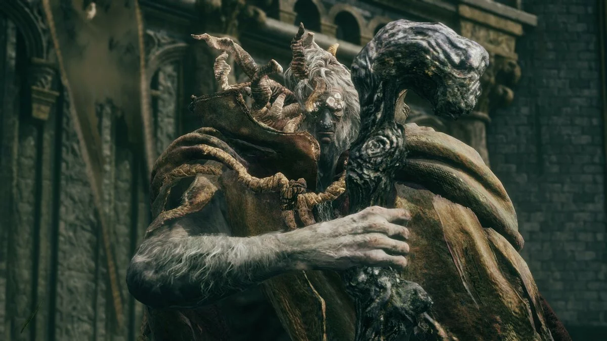 Проходим через туман и встречаемся с боссом «Священник-зверь». Во второй фазе он переродится — придётся сражаться с врагом «Маликет Чёрный Клинок». За победу получим артефакт «Воспоминание о Чёрном клинке».