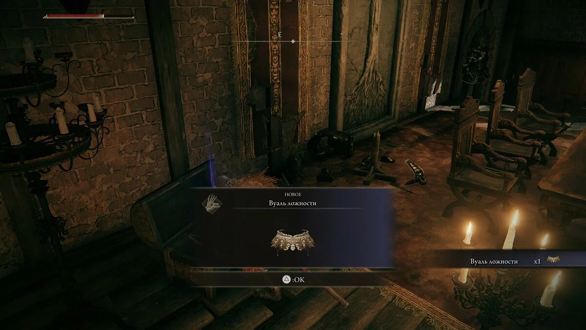 Атакуем его в стелсе со спины и добиваем быстрыми ударами. Открываем сундук, забираем «Вуаль ложности» и проходим дальше.