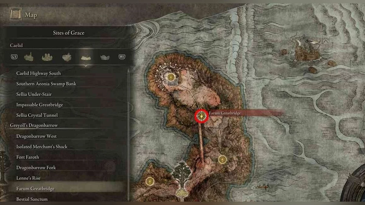 Вам нужно посетить окрестности Великого моста Фарум (Farum Greatbridge) на севере Каэлида (Caelid). Попасть туда можно в самом начале игры.