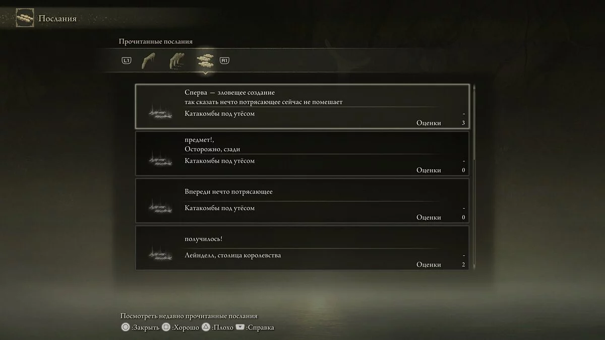 На протяжении всей игры в разных частях мира Elden Ring пользователи смогут заметить разнообразны белые надписи на земле. В них другие искатели приключений со всей планеты оставляют подсказки об окружении и ближайших событиях.