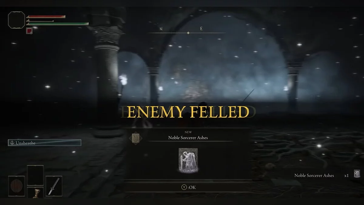 Эти воины полезны на любом этапе игры, но доступ к ним откроется только после того, как вы попадёте в город Нокрон. Когда окажетесь на этой локации, не спускайтесь по подсвеченному пути, а поверните направо. Двигайтесь вперёд, пока не окажетесь на кладбище. Справа, среди могил, находится нужный пепел.
