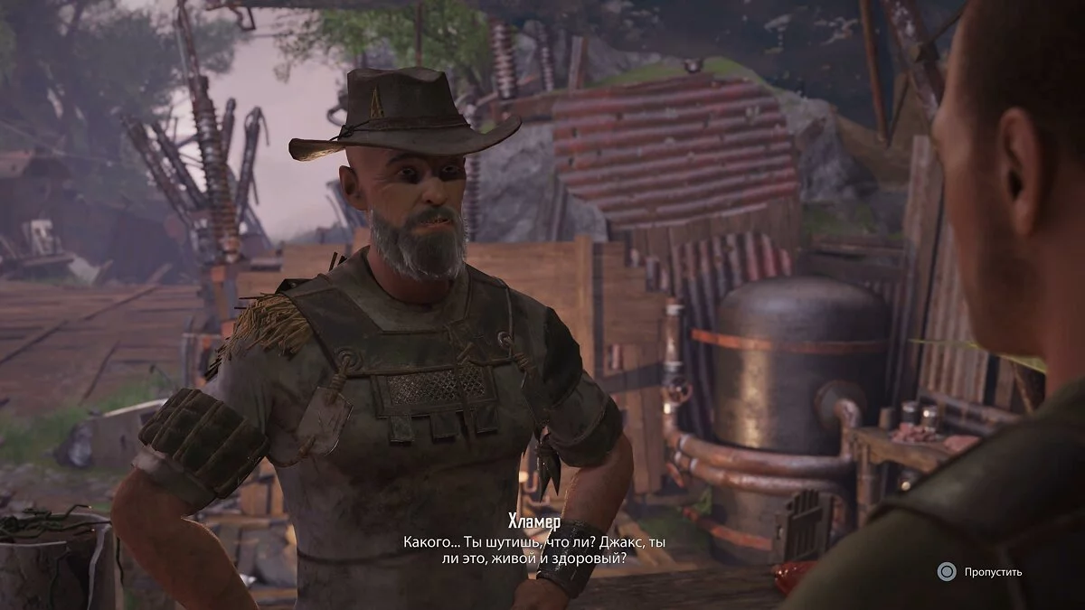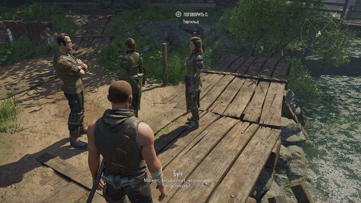Двигаемся глубже в поселение и разговариваем с Адамом. В ветке «Шестая сила» активируются квесты «Подготовка Бастиона» и «Крепкие союзы». Текущая цепочка заданий завершится после разговора с Адамом во второй главе.