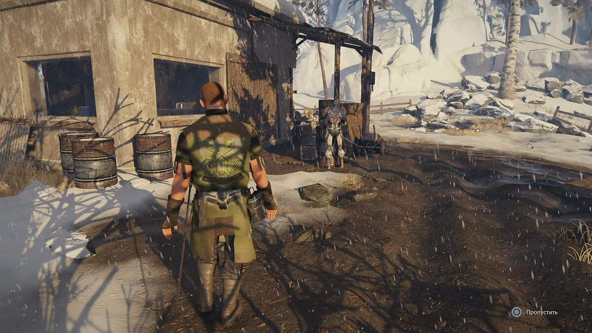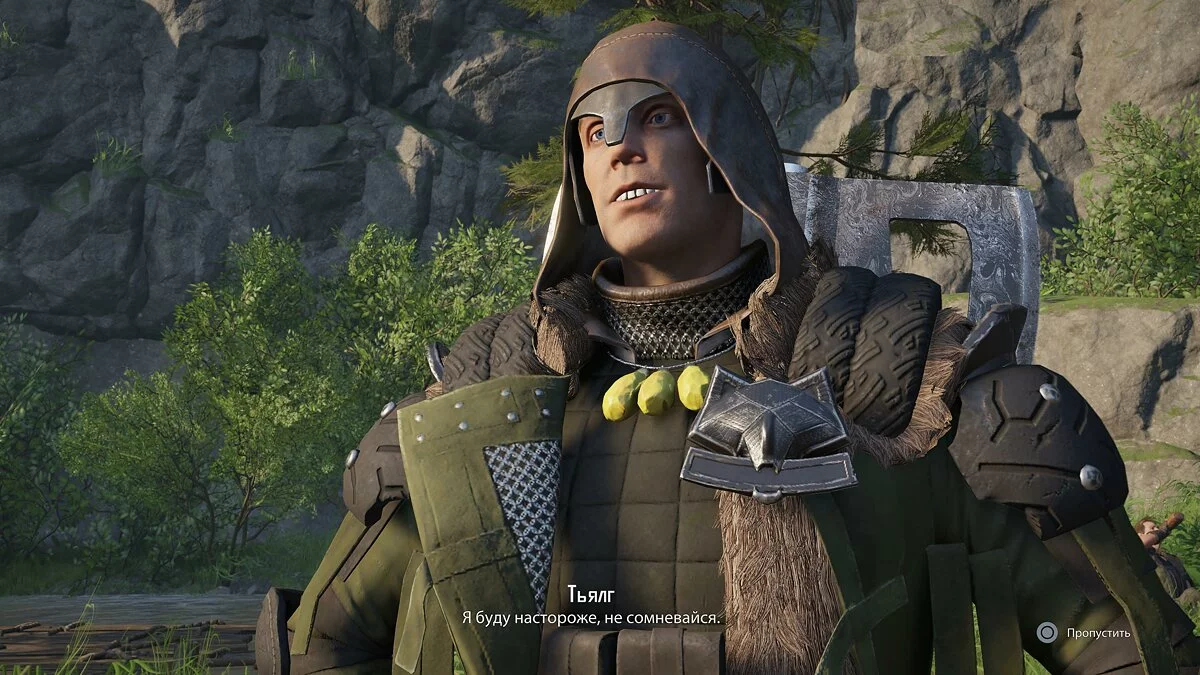 Активируется задание «Доступ в Форт». После его выполнения разговариваем у входа в крепость с мужчиной и просим его сменить на посту Тьялга. Возвращаемся к солдату на аванпост и завершаем задачу.