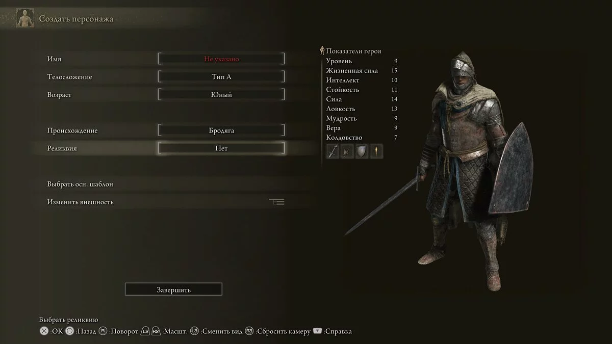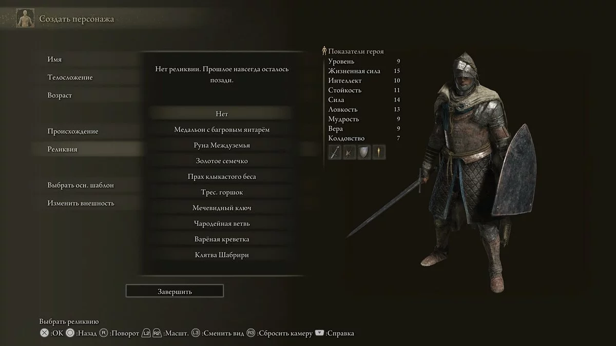 В процессе создания персонажа игра предложит выбрать ему имя. В этом же окне есть пункт «Реликвия». Открываем список и выбираем понравившийся артефакт. Будьте внимательны, так как это окно можно оставить в стандартном значении «Нет». Из-за этого герой не получит стартовый предмет.