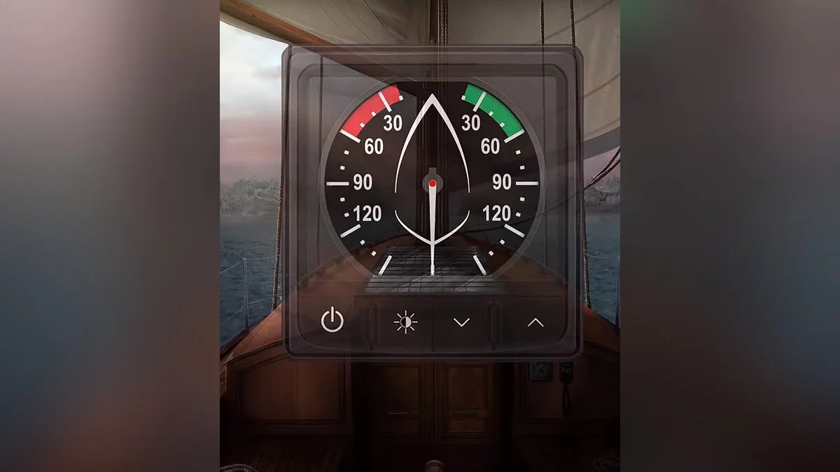 На экране появится индикатор. Ветер должен дуть по правому борту.