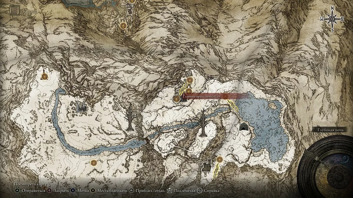 Оказавшись в Запретных землях, следуйте по дороге вперёд, пересеките большой каменный мост из блоков и доберитесь до заснеженных гор. На возвышенности вы увидите замок Сол. Можете посетить его, чтобы сразиться с боссом.