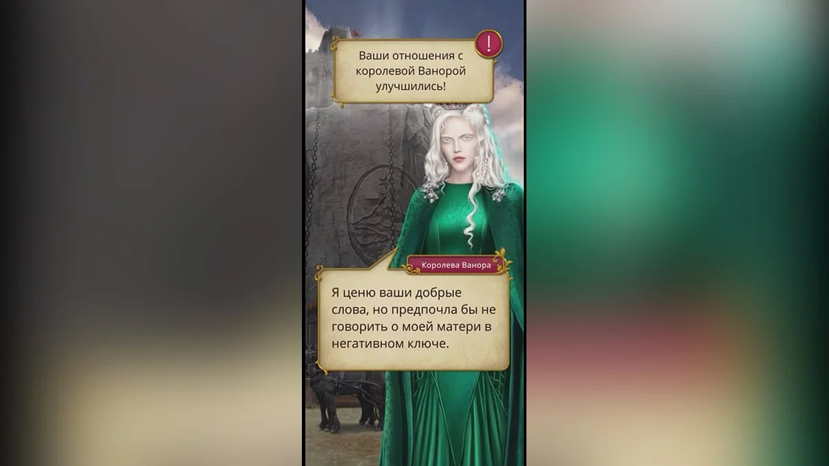 - Это просто не в её характере — Ваши отношения с королевой Ванорой улучшились!;