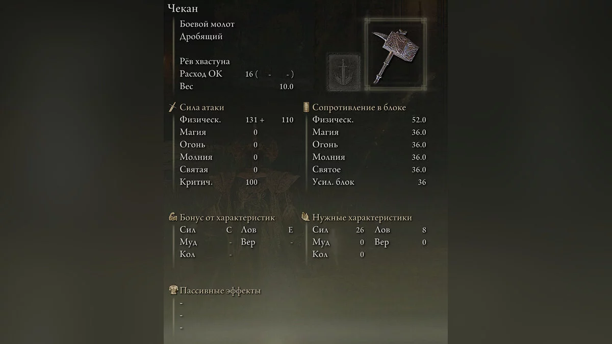 Советуем отправиться в Грязные катакомбы, где находится босс Дуэлянт, хранитель могил. Именно с него выпадает Чекан, который на начальных этапах игры позволит познакомиться с оружием этого класса. Как обычно, основные бонусы дают показатели силы и ловкости вашего персонажа. Этот молот обладает навыком «Хвастливый рёв» и может быть прокачан Пеплом.