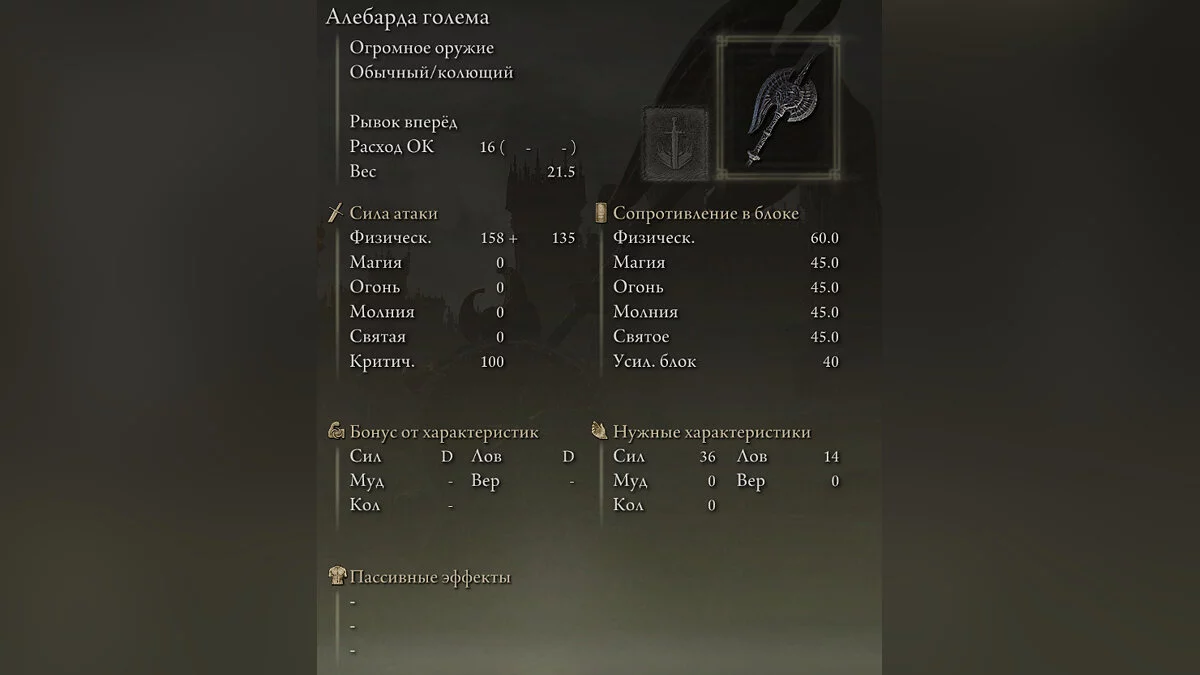 Если ваш герой способен управиться с огромным оружием, то рекомендуем отправиться к месту благодати «Башенный мост Замогилья» в регионе Грозовой холм. С обитающих там каменных великанов выпадает Алебарда голема. Она обладает навыком «Рывок вперёд», который позволяет совершить резкий выпад и нанести колющий удар противнику.