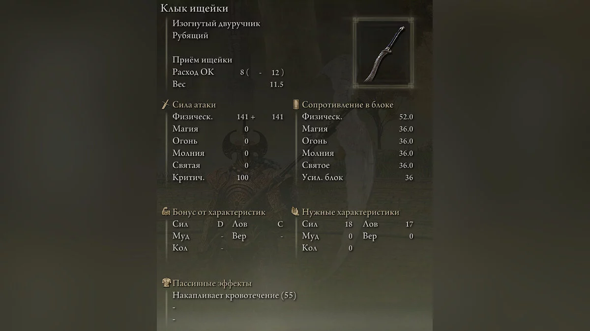 Требования к оружию и бонусы от характеристик в Elden Ring