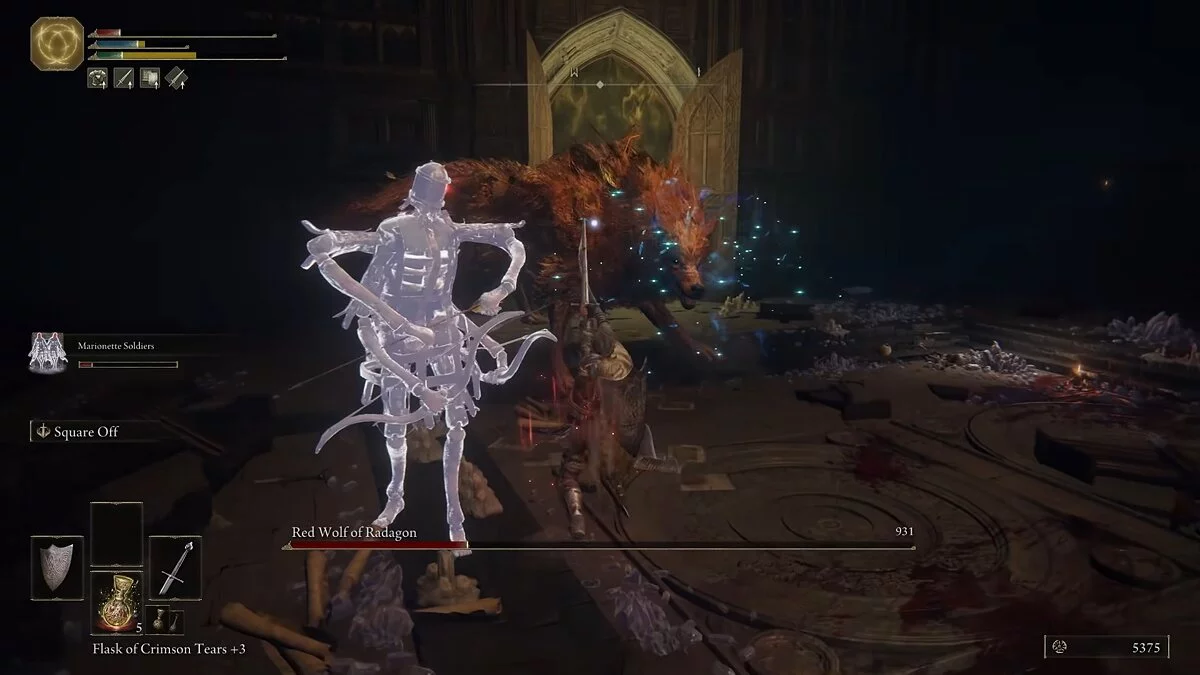 Рекомендуется закрываться щитом при передвижении и стараться уклоняться от ударов врага. а также использовать прах для призыва помощников. Для магов эта битва окажется сложнее. Обязательно нужны напарники, которые будут отвлекать босса, так как в этот момент игрок сможет использовать заклинания. К тому же Алый волк Радагона часто уклоняется от дальних заклинаний, поэтому придётся тщательно выбирать подходящий момент для атаки.