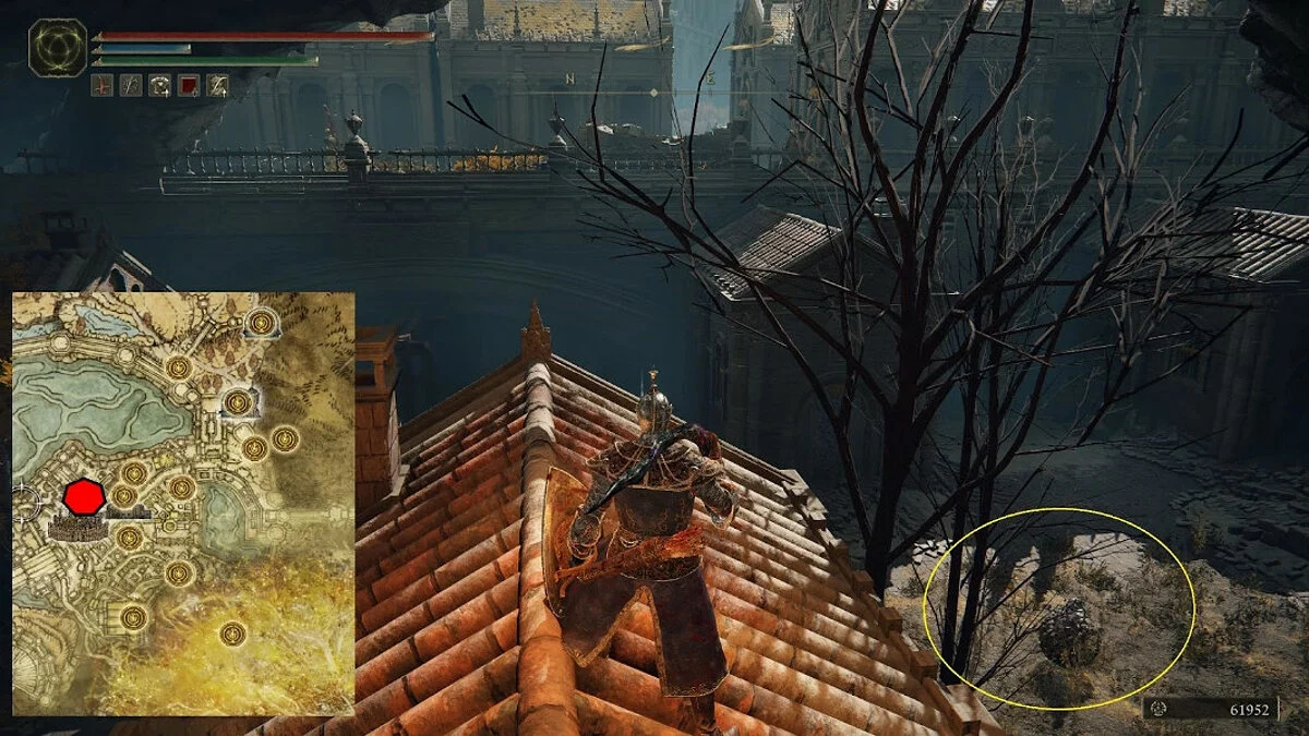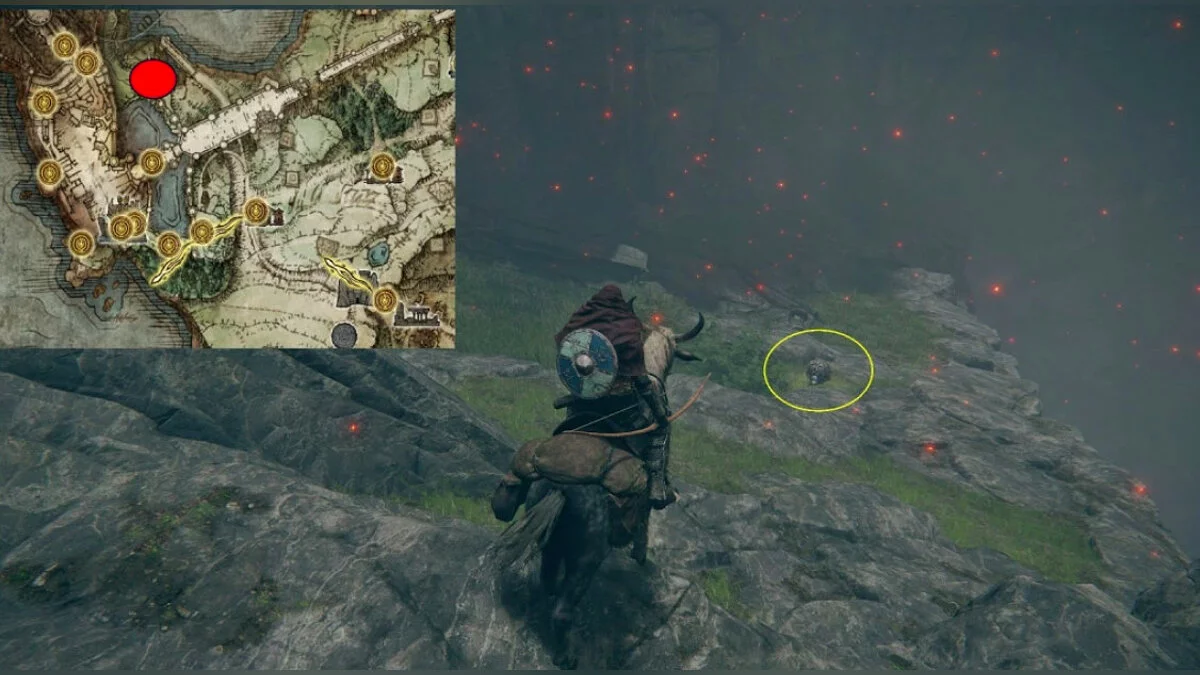 - Как найти: идите дальше в «поместье Кариа», пока не дойдете до части с несколькими колдунами и рыцарем-троллем. Прежде чем вы доберетесь до конца, посмотрите налево, чтобы найти расщелину. Уступы ведут к нескольким живым кувшинам, а в самом низу вы найдете пепел войны.
