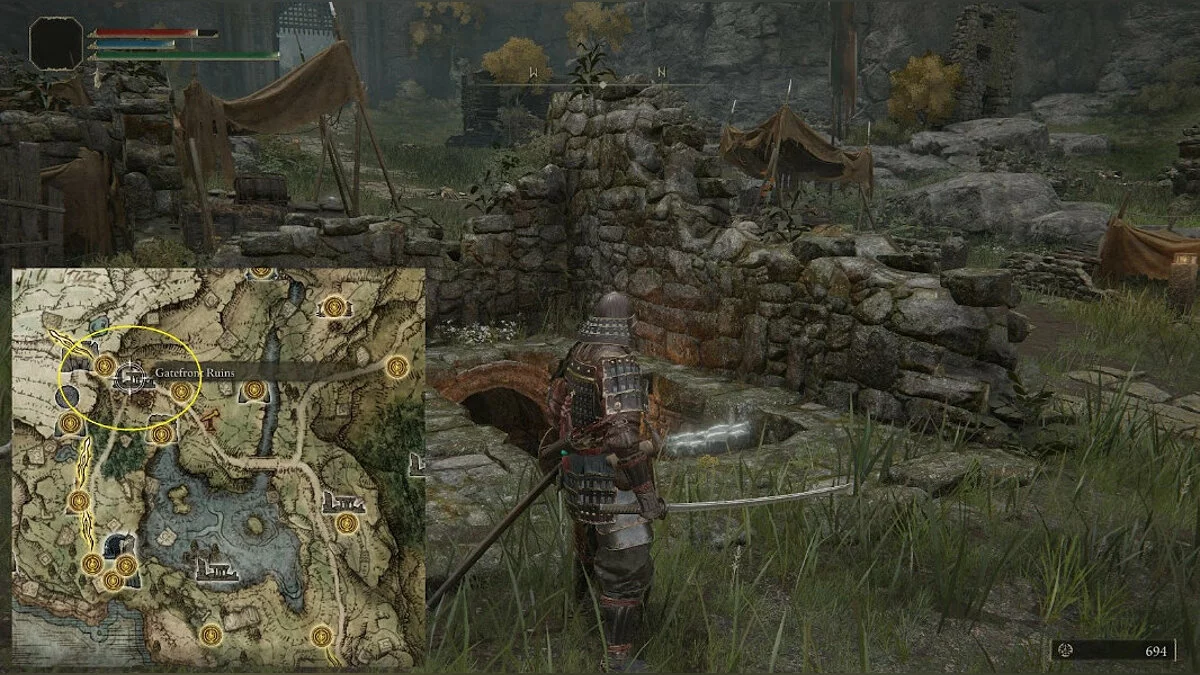 Чтобы начать использовать навыки оружия в Elden Ring, вам нужно добраться до «Руин около врат» в Замогилье. Это достаточно близко от места начала игры, поэтому пропустить их почти невозможно. Осмотрев развалины, вы обнаружите спуск в подземелье.
