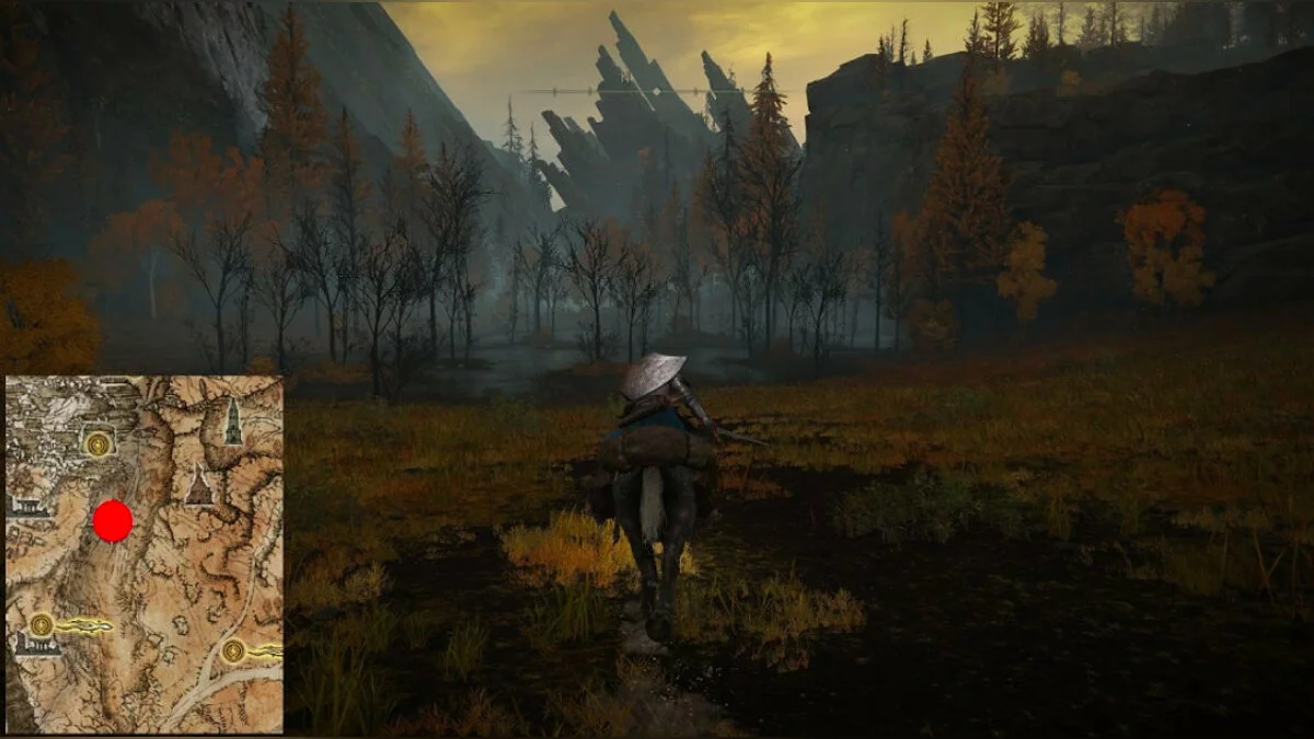 - Как найти: от пастбищного холма дерева Эрд следуйте по болотистой дороге, ведущей на север, чтобы найти скарабея.