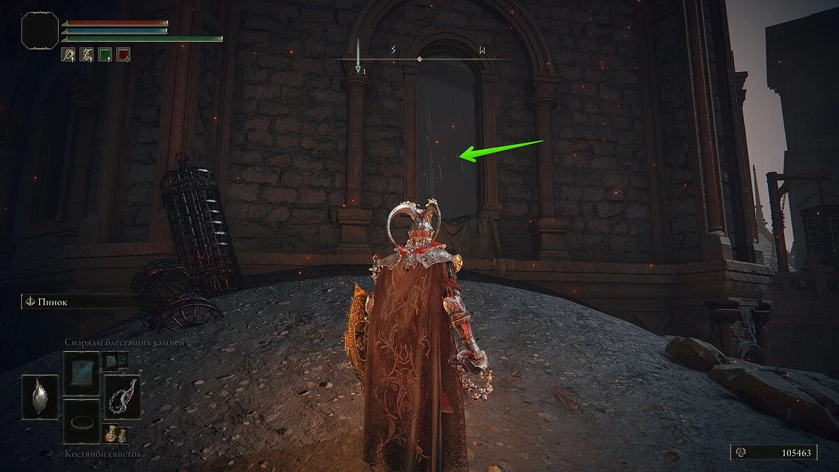 В коридоре вы столкнётесь с улитками. Бегите по единственному пути и найдите место благодати «Храм города-тюрьмы». Откройте врата, поверните направо и пройдите по крышам до входа в здание. Здесь вы можете применить мечевидный ключ и получить уникальный медальон. Если мечевидного ключа у вас нет, просто проследуйте по мосту налево.