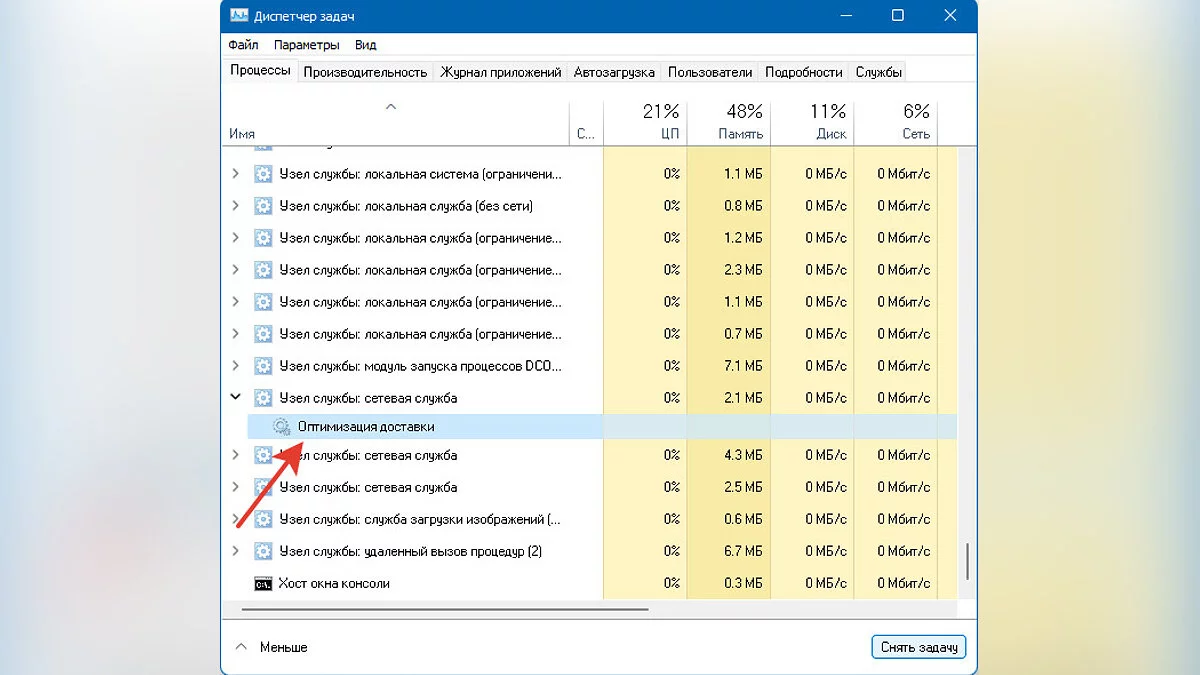 - Если Центр обновления Windows активен, вы увидите процесс «Узел Службы: Оптимизация доставки».