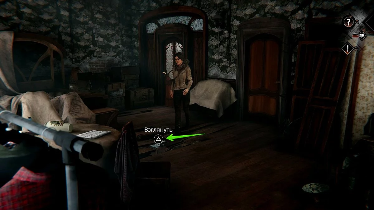 Взаимодействуйте с пианино, смотрите кат-сцену. Теперь вы управляете Лени. Попробуйте сыграть на инструменте и поднимитесь на второй этаж. Проследуйте в дальнюю комнату справа и откройте окно. Так вы снова окажетесь в настоящем времени.