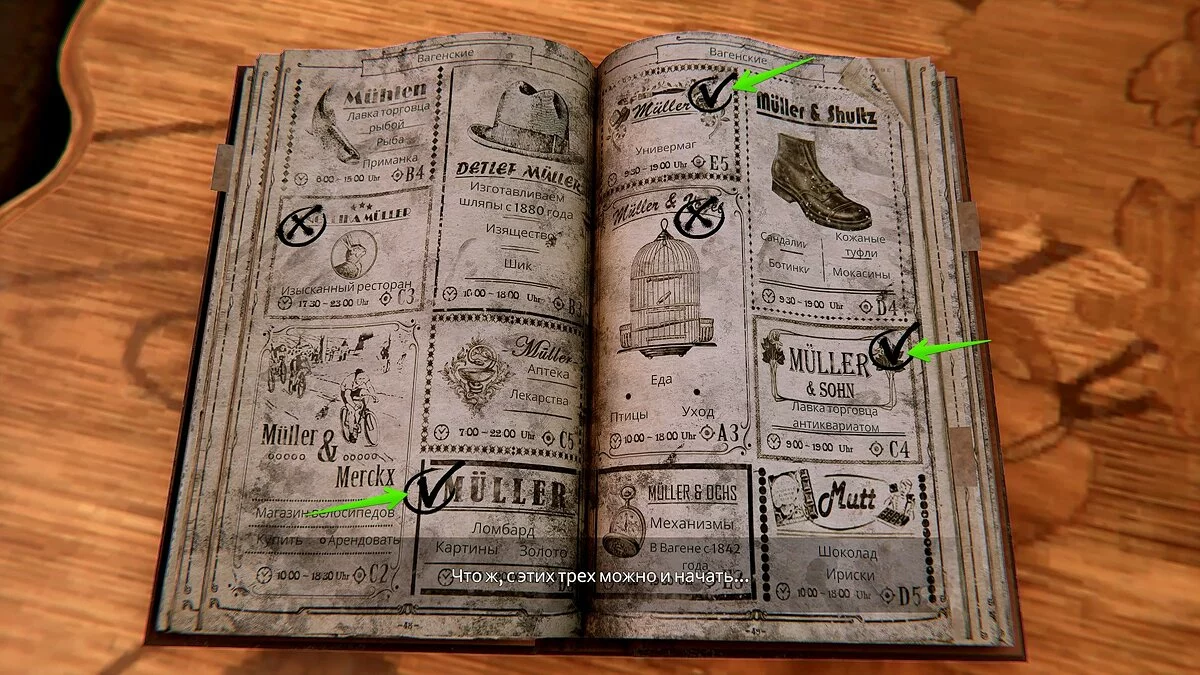 Около года спустя вы окажетесь в Вагене. При помощи телефонного справочника выберите три магазина:
