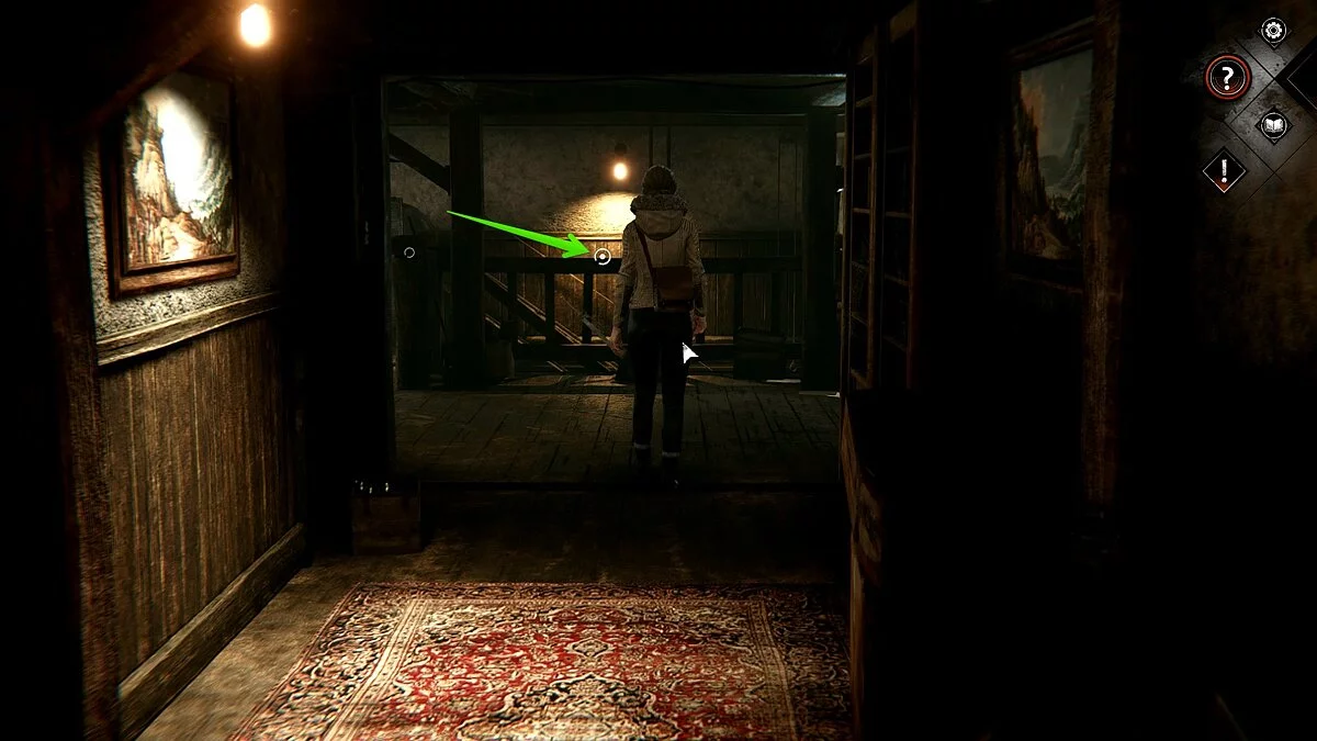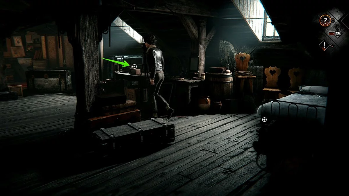 Перед уходом из гостевого дома поднимитесь на второй этаж, заберите картину и бумажник со стола. Взаимодействуйте со всеми интерактивными объектами и поговорите с фрау Вагнер. Можете провести самоанализ на кровати. Чтобы покинуть гостевой дом, взаимодействуйте с дверью справа от ресепшена.