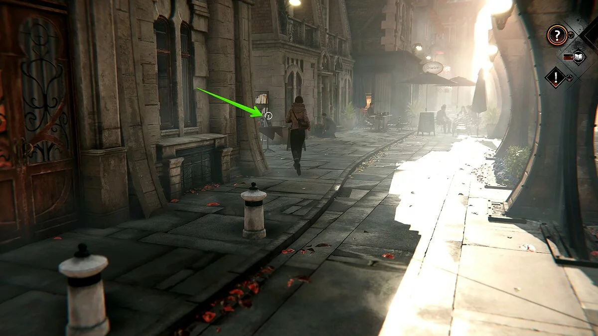 Садитесь в трамвай и отправляйтесь в район «Мост Туманов». Найдите дом №20 и войдите в магазин. Перед этим рекомендуем взаимодействовать со всеми интерактивными объектами, чтобы завершить дополнительную задачу «Узнать последние новости о Вагене».