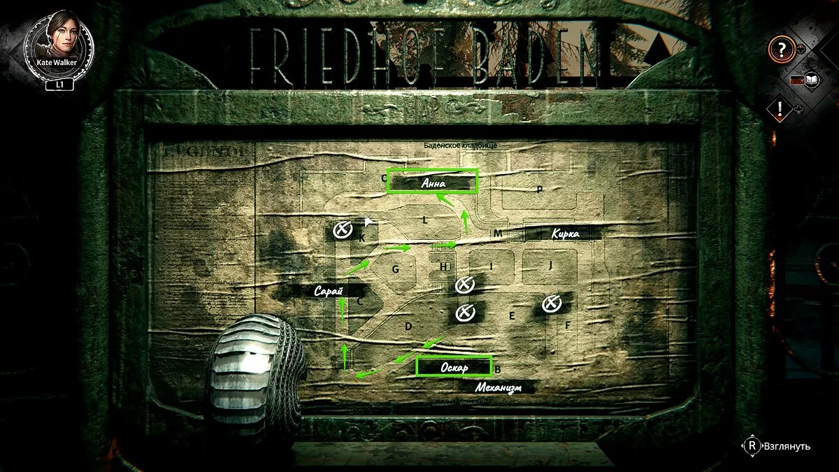 Поговорите с Юнтой и выберите «Уйти», когда игра предложит выбор. Доберитесь до кладбища, взаимодействуйте с картой. Оставьте Оскара наблюдать за картой (при необходимости можете переключиться на него). Вам нужно следовать по пути, который указан на скриншоте ниже.
