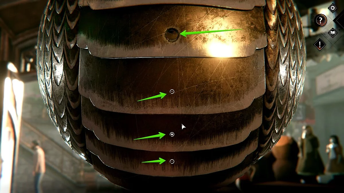 Снова вернитесь к логотипу Форальберга. Опустите щитки так, чтобы все отверстия сошлись вместе и появилась кнопка. Так вы получите специальный ключ от автоматона.